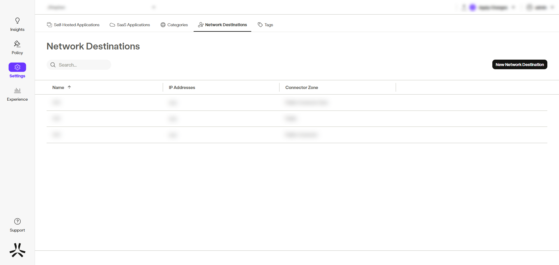 - In the management console, go to Settings -> Destinations -> Network Destinations.
